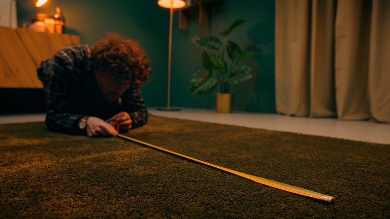 Mentre il ragazzo inizia, in maniera abbastanza maldestra e goffa, a prendere le misure dello spazio tra la zona cucina e la zona living, la compagna legge le specifiche del tavolo sul sito web di Mobili Fiver.
