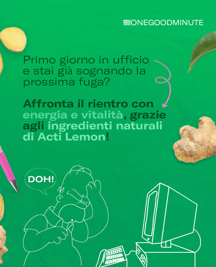 I contenuti social realizzati per il brand ruotano attorno al concetto di #ONEGOODMINUTE: un solo minuto per sè stessi ogni mattina, con Acti Lemon, renderà #EASY la giornata.